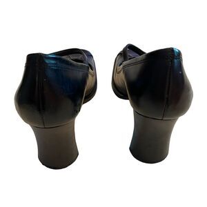 Classic Mary Janes with string heel. Black with seams. These are such usable shoes. Great with a dress, skirt, pants or jeans. In great shape with one scuff on inside of right shoe, pictured. Those are insoles that I added on the inside.