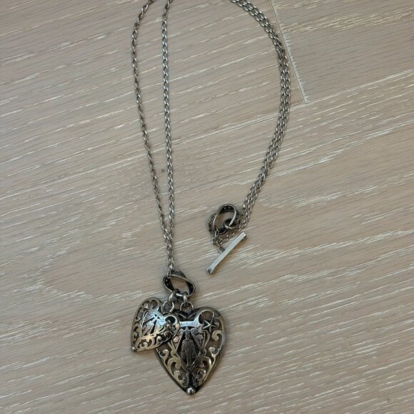 GUCCI 2 Heart Crests Pendant in aged sterling silver