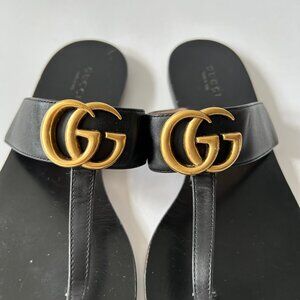 GUCCI BLACK LEATHER GG T-STRAP SANDAL