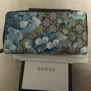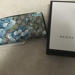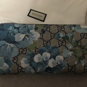 Another gorgeous GUCCI blue blooms item from my collection...this sought-after wallet will match any purse and is in PRISTINE condition! I did use it but it looks brand-new. No wear and tear and no rips, marks or stains of any kind (that I found). It is a standard size women's wallet...medium and will fit most purses for an extra chic look. And as always, it is 100% authentic...I bought it myself from the Gucci store in Toronto. It will come to you in its original GUCCI box like-new!!!