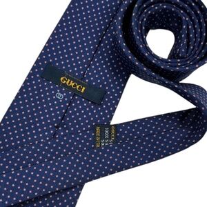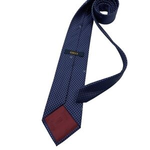 GUCCI Blue Polka Dot Monogram GG Silk LUXURY Tie ITALY