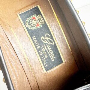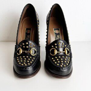 GUCCI Calfskin Studded Horsebit Alyssa Pumps Black size 38.5