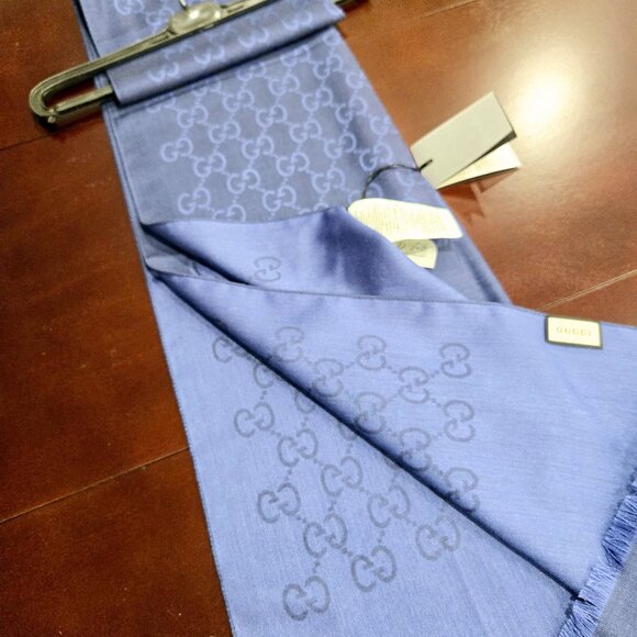 GUCCI GG Jacquard Wool/Silk Scarf - Blue