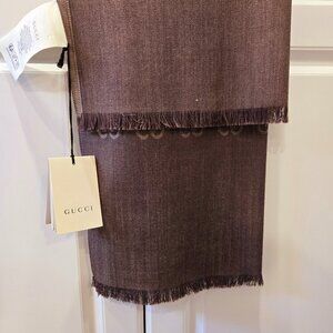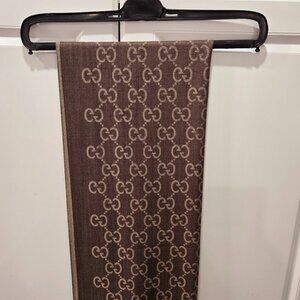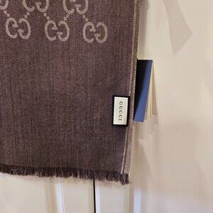 GUCCI GG Jacquard Wool/Silk Scarf - Brown
