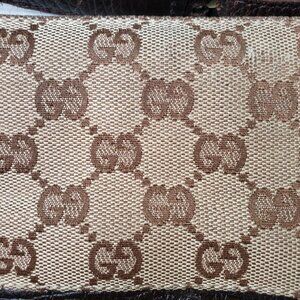 The front and back of the bag are covered in the Gucci monogram so that everyone knows about the luxury. What they don't need to know is how good of a deal you got.