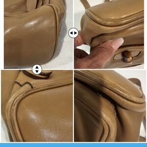 GUCCI Vintage Bamboo Handle Drawstring Leather Backpack in Very good pre-loved condition with very little signs of wear to the corners as shown in the photos and a stain in the very bottom corner of the interior cloth lining as shown in last photo and a few tiny pen marks in the inside interior lining and some very minor wear on the back strap as shown in photo# 7. This bag is absolutely gorgeous and the leather is a beautiful dark tan color , Bamboo Top handle and Bamboo twist locks on the 2 front outside flap cover pockets. Adjustable Straps, leather drawstring closure,inside zipper pocket, 100% leather. Measurements shown in photos. No dustbag. Serial # 003 2058 0016 Made in Italy. PLEASE view all photos carefully as no returns.