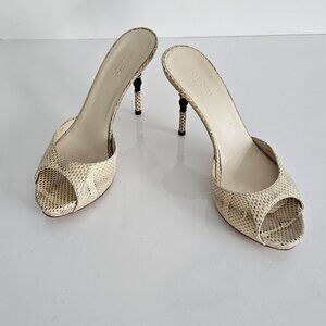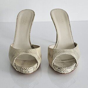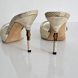 GUCCI Cream Python Snakeskin Peep Toe Bamboo Heels Sandals