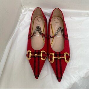 GUCCI Horsebit Check-Wool Point-Toe Ballet Flats Women Size 8.5
