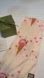 Charming Gucci silk twilly playful ice cream design. Soft pink and cream colors add a fun touch. A beautiful accessory to attach to your handbag, tie in your hair, or in a bow around your neck.