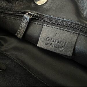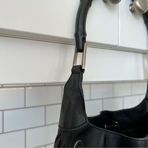 GUCCI Leather Drawstring Bamboo Handle Shoulder Bag