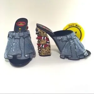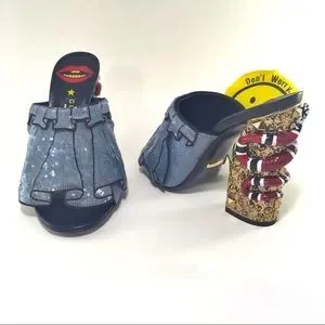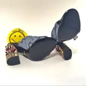 -Gold tone and stud embellished chunky heel