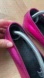 Stylish metallic pink loafers featuring gold hardware. Perfect for adding a pop of color to any outfit.