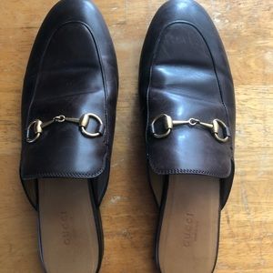 GUCCI Princetown Horsebit Chocolate Brown Leather Mules Slides Size 38.5, 8.5