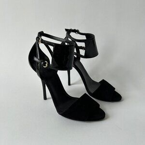 GUCCI vintage sandals designed by Frida Giannini for Gucci Spring 2008. Patent leather heeled sandals with double buckle. Featured on the runway.