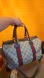 Chic Gucci satchel with signature pattern. Features red and green stripe accents. Perfect for stylish outings.