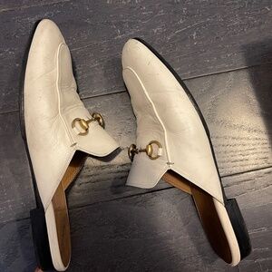 GUCCI white Horsebit Princetown Leather Slipper Loafers Mules Size 39