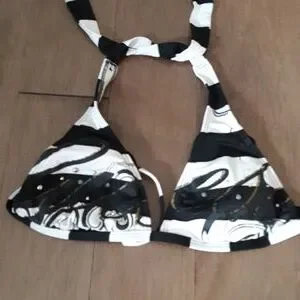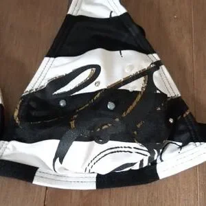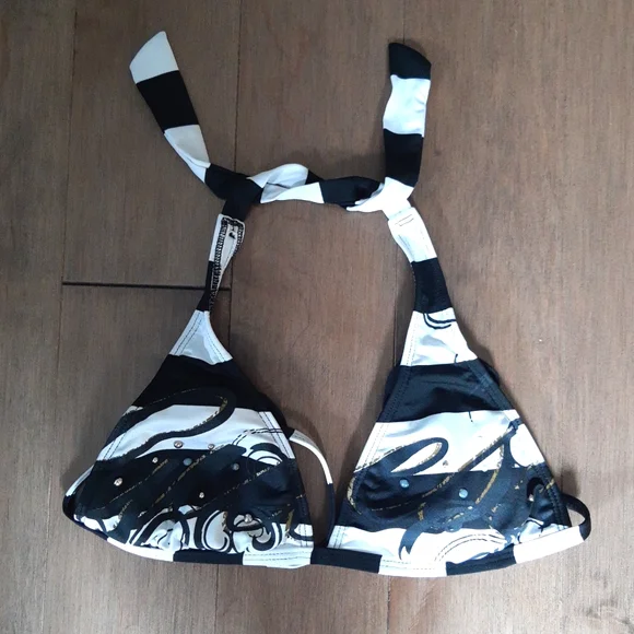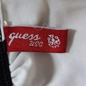 GUESS BIKINI TOP No size and no composition tag Fits like small Color: Black, white and gold Pearly detail (see last picture) Excellent used condition