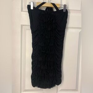 GUESS BLACK RUCHED HALTER/STRAPLESS MINI DRESS WITH LACE RUFFLING