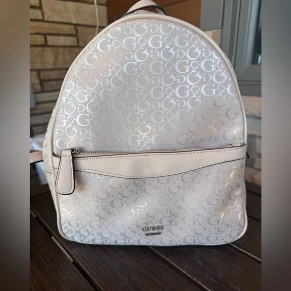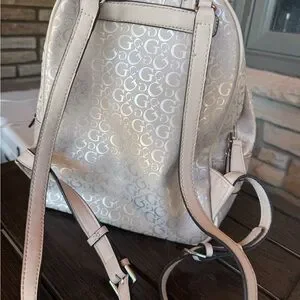 Elegant GUESS backpack purse with signature monogram design. Spacious and stylish for daily use. Measures approx 10”Wx12”Hx5”D