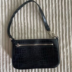 Stylish GUESS shoulder bag with croc pattern. Sleek and versatile design.