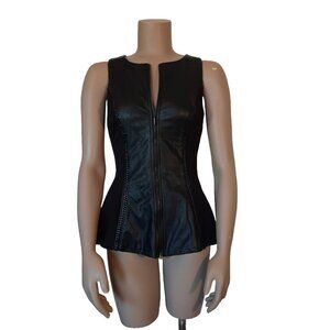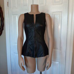 GUESS Black Faux Leather Fitted Peplum Vest Top - Size Small | Bikercore Wear