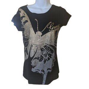 GUESS Black Graphic T-Shirt Tee with Butterly Size Medium