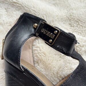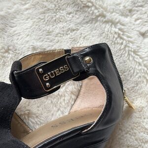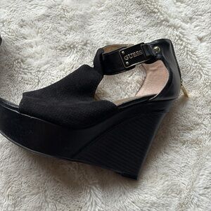 GUESS Black Peep Toe Wedge Heels –Chic Comfort with a Bold Edge Size 5.5