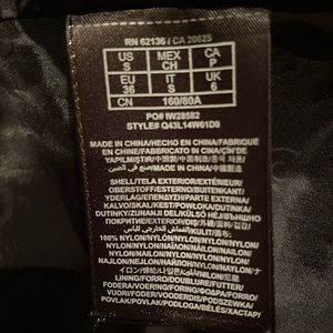 Quilted Guess jacket with elastic sides for a perfect fit. Solid black exterior with a black on black all over logo pattern on the interior. Full zipper plus snaps. 1 side pocket on each side - no closure. Pockets are still partially stitched closed as sold. No interior pockets. Size small - fits small. Slim fit. Lightweight. Perfect for a cool Spring or Fall day. Never worn or washed. Shell 100% nylon. Lining 100% polyester. Fill 100% polyfill. Length 22.5” not including the hood. Sleeve 24”. PTP 16”. NWOT.