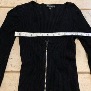 GUESS Black Ribbed Knit Rhinestone Zip-Up Cardigan Top - XS