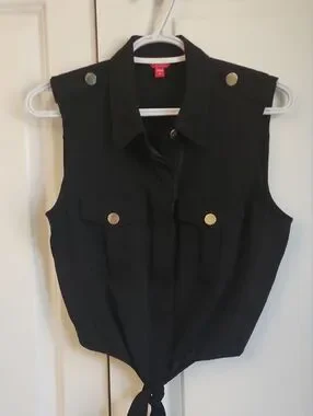 super cute Black GUESS top Clean neckline and stitched detail. Subtle branded tag at the collar. Simple and stylish. branded gold buttons. never worn. excellent condition