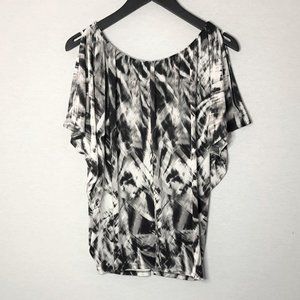 GUESS Black & White Marble Print Cold Shoulder Blouse; Super soft & only worn a couple of times!
