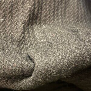 Fabric: Heavyweight textured wool-blend weave with a subtle chevron-like pattern.