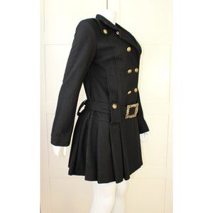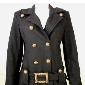 GUESS Black Wool Winter Dress Coat Gold Belt
