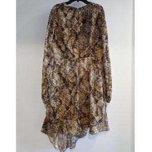 Guess snake print dress features asymmetrical faux wrap cut. Size10. Style: Dominica.