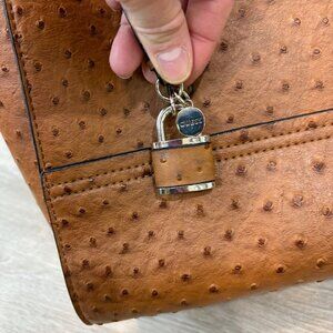 GUESS Faux Ostrich Leather Shoulder Purse Tote Bag Brown.