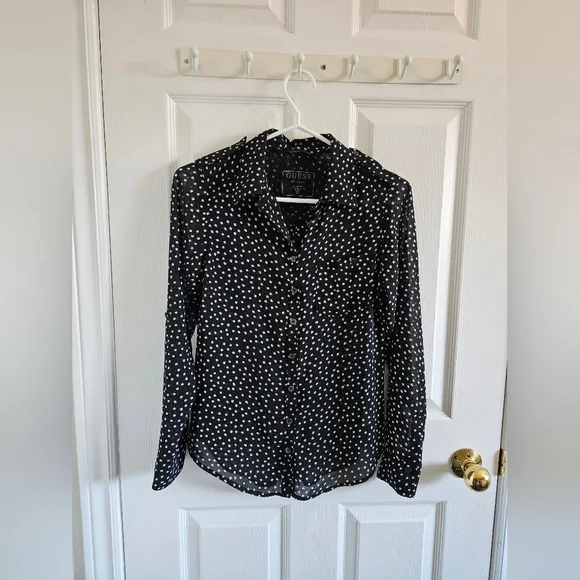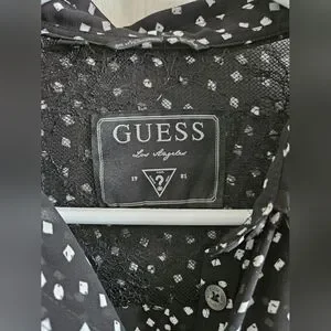 Long sleeve GUESS button-down blouse. Subtle lace detailing on the back. Shirt is slightly sheer and light, great for the summer!