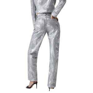 GUESS CLELIA Embroidered faux-leather SILVER pants Small
