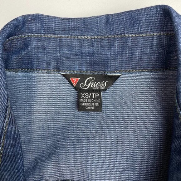 GUESS Chambray Snap Button Sleeveless Top Sz XS Blue