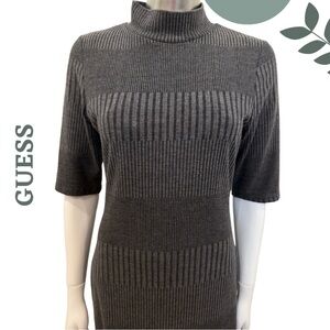 GUESS Charcoal Ribbed Knit Midi Sweater Dress Short Sleeve - Size Large