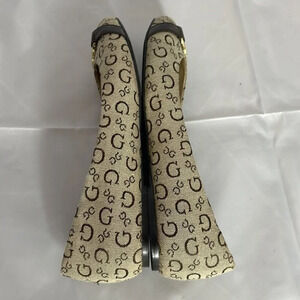 Ladies beige and brown textile Guess “Claira”Signature Logo Ballet Flats.