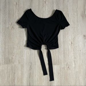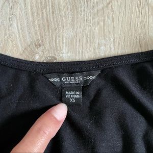 Guess Crop Tee • Tie Front • Circle cut out • Worn once Feel free to comment for more info 🖤!