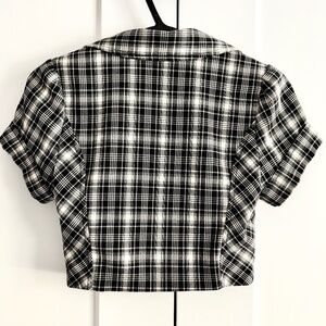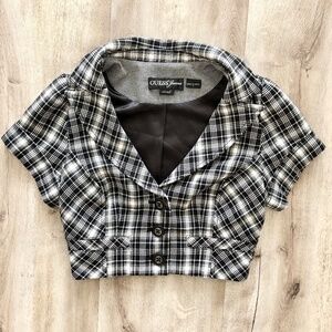GUESS, Cropped Blazer, Womens, Black & White, Plaid, Cropped Top, Button Up, S