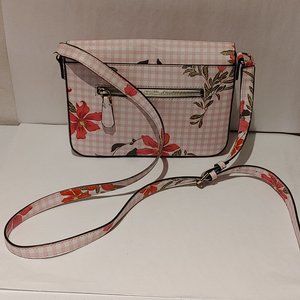 GUESS Crossbody Purse Pink Gingham Pattern Floral 1981 Handbag Like new