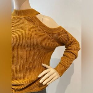GUESS | Cut Out Shoulder Kailyn Sweater in Medieval Gold Size Medium