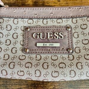GUESS| Cute Tan/Brown Monogram Wristlet Clutch Mini-Bag