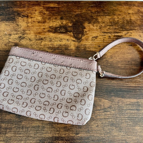 GUESS| Cute Tan/Brown Monogram Wristlet Clutch Mini-Bag