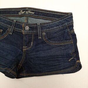 GUESS Dark Blue Jean Short Shorts Whiskering Details Sz 25