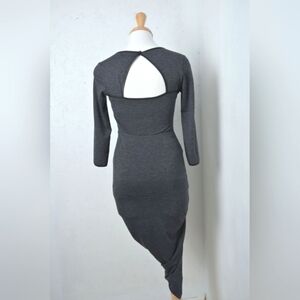 GUESS | Dark grey front key hole & black pleather trim draped style dress cropped sleeves . women's size X small