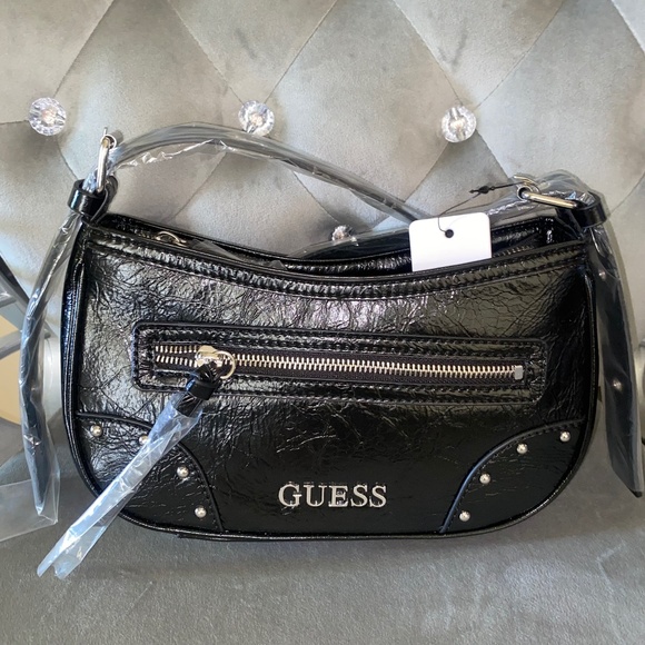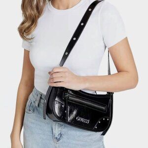 GUESS Dementri Shoulder Handbag Creased Patent Faux Leather Purse