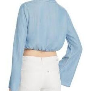 Guess denim blue bell sleeve crop top :: Size S :: Excellent condition with lyocell material. Tiny silver metal snap button closure at front. Nice flowy feel and great 70s style bell sleeves!